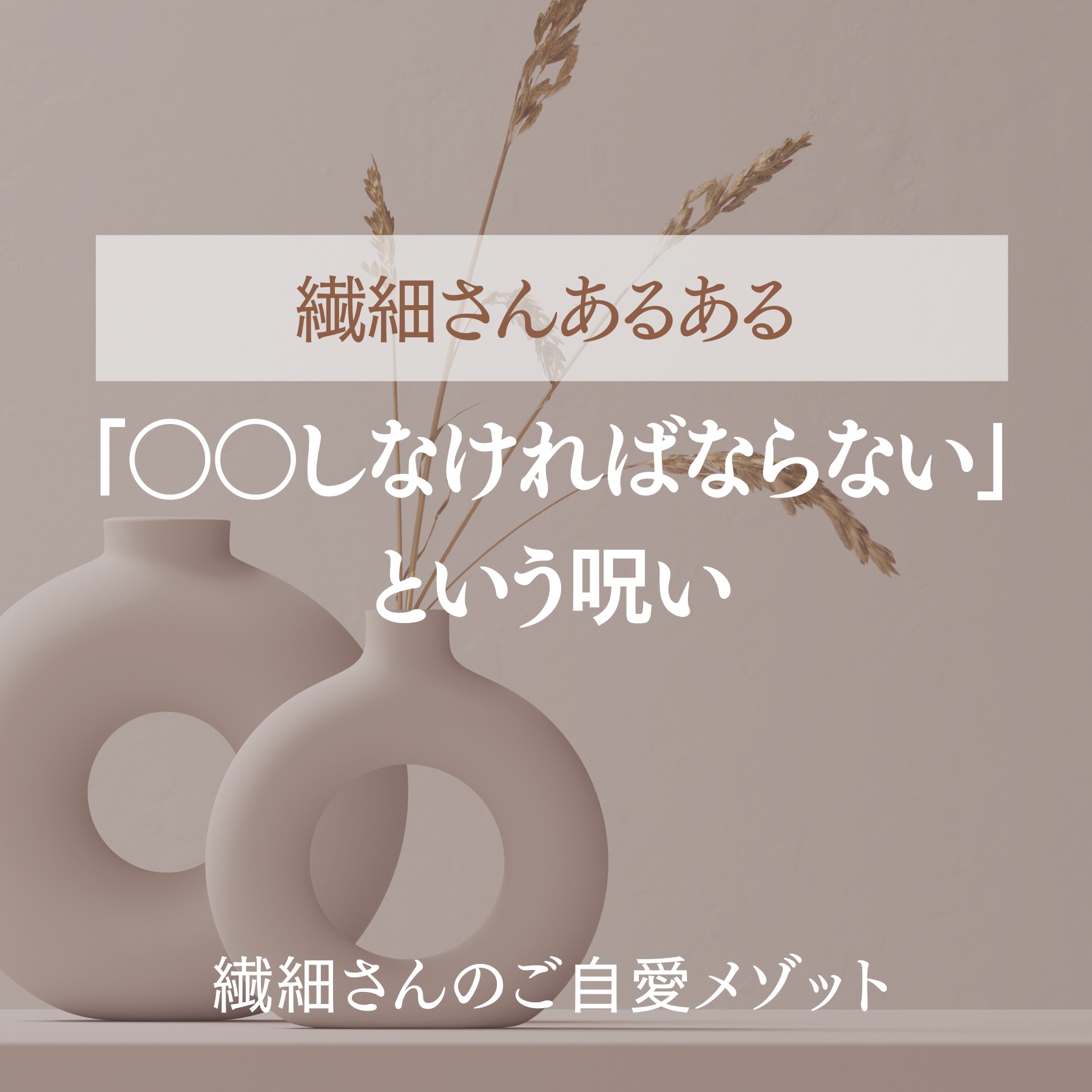 繊細な気質の強い方は自分や他人に対して強い責任感を感じやすく、時に「〇〇しなければならない」という…